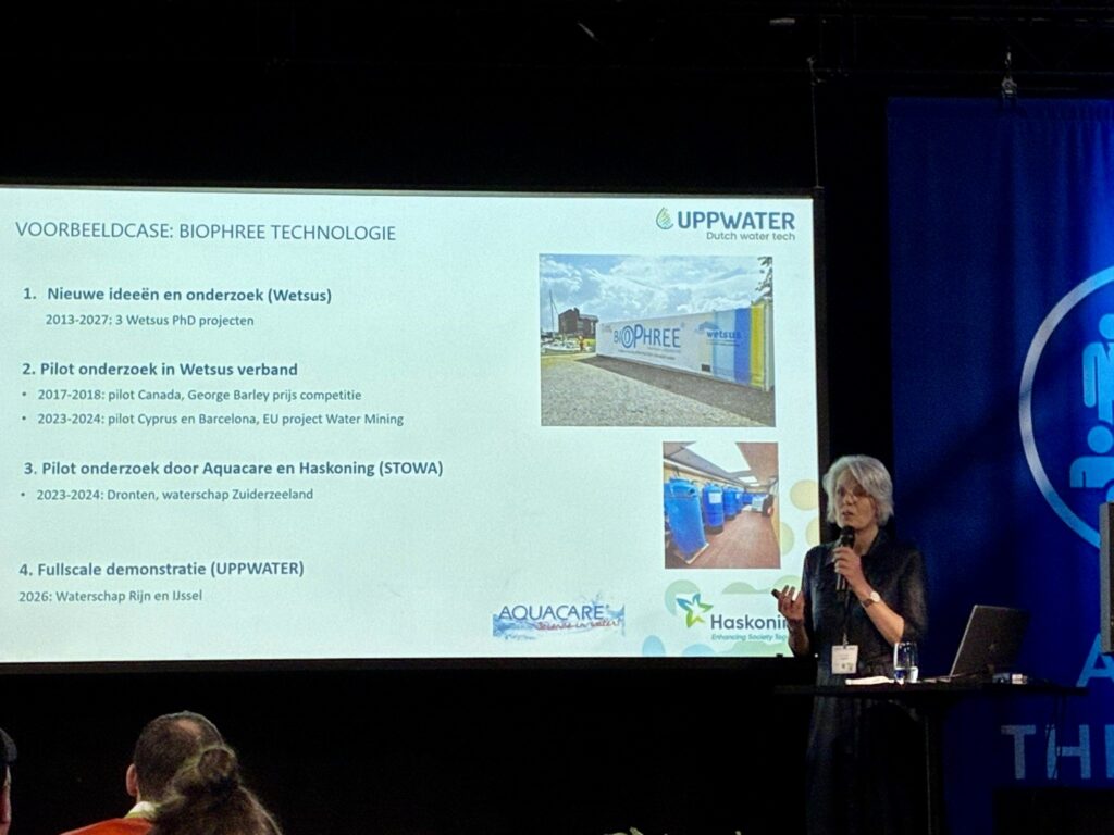 UPPWATER organiseerde een aantal lezingen, sponsorde het exposantendiner, had mooie ontmoetingen en goede gesprekken op de stand, hield een Meet & Greet met 3 pitches van bedrijven en nog veel meer. Op 17 maart presenteerden Maarten Rinket (Powerspex) en Wichert Kanis (Vechtstromen) het UPPWATER-project Datagestuurd zuiveren in het beheergebied van waterschap Vechtstromen. Heleen Sombekke gaf tekst en uitleg over UPPWATER onder de titel “Wat heb jij nodig om te versnellen in de Dutch watertech?’